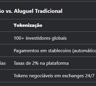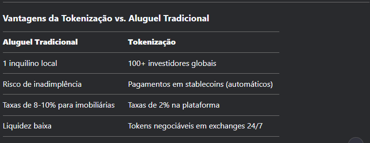 - ROI médio de 9,5% ao ano em aluguéis tokenizados (vs. 6% dos FIIs).